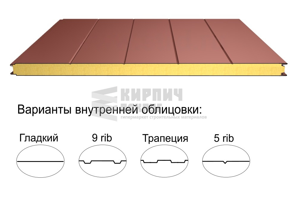 В интернет-магазине "Кирпич Вокруг" Вы можете купить Стеновая трёхслойная сэндвич-панель 5 rib 100мм 1000мм с видимым креплением минеральная вата Полиэстер Доборник в Пушкине, а наши специалисты готовы вам помочь с выбором по адресу: , или оказать консультацию по телефону: .